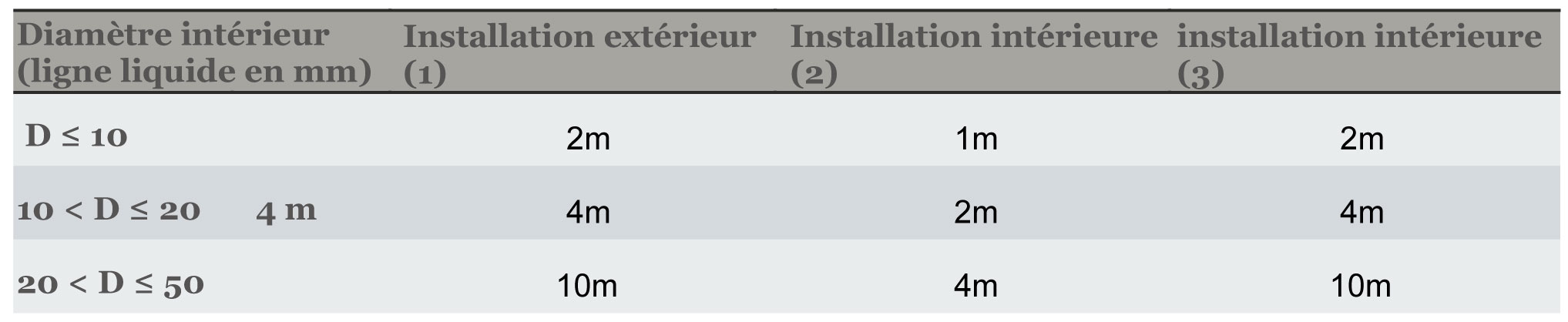 - La réglementation ERP introduit des zones d'exclusion autour des raccordements frigorifiques en fonction du diamètre de la tuyauterie et de l'inflammabilité du fluide.